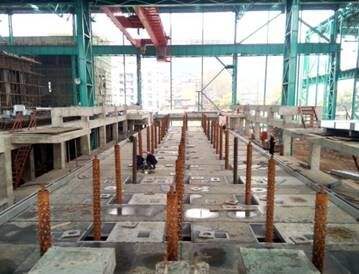 臺車式退火爐鋼 結(jié)構(gòu)主要包括爐殼支撐框架和驅(qū)動設(shè)備支撐框架(平臺鋼結(jié)構(gòu))。考慮到爐殼潛在的熱脹冷縮因素,各段爐殼支撐框架與平臺鋼結(jié)構(gòu)采川相互獨(dú)立結(jié)構(gòu)。各爐段的底 輥室先安裝就位,以自己四角立柱為基準(zhǔn)完成4個基準(zhǔn)立柱焊接;再焊接左右兩個整體端板.而操作側(cè)和傳..